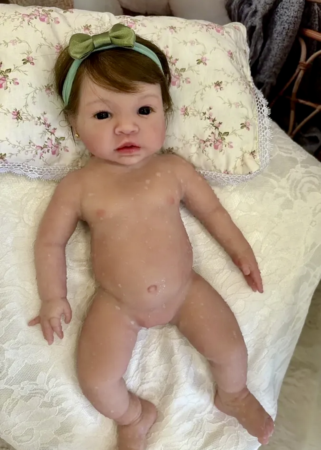 Bebê todo feito em arte reborn, com todos os detalhes de manchinha de frio, veias aparentes, pintura nas dobrinhas do corpinho, francesinha nas unhas Todos os detalhes de pintura para parecer um bebê real. BEBE SILICONE SÓLIDO MOLINHO